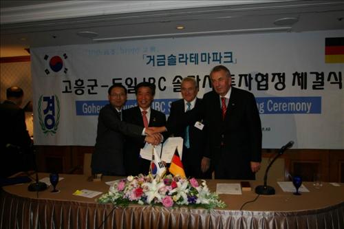 고흥군(군수 박병종)은 3월 26일 서울 힐튼호텔에서 독일 태양광발전회사인 IBC 솔라社와「거금 솔라 테마파크」조성사업 협정서(MOA)를 체결했다.