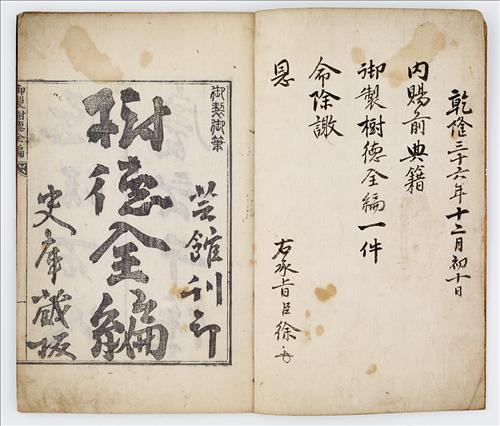 특히 영조가 쓴 '수덕전편(樹德全編)'이라는 책은 영조가 직접 짓고, 표지의 제목과 글씨를 썼으며 신하에게 하사한 책이라는 기록까지 나와 있다. 이 기록을 통해 책에 대한 출판 정보와 영조의 글솜씨를 볼 수 있으며 또한 왕이 문치주의에 의해 나라를 다스리려 했다는 산 증거를 확인할 수 있다. 또한 정조의 명령으로 교서관에서 출판한 '명의록(明義錄)'과 영남 감영(監營)에서 이를 번각한 책을 함께 전시하여, 중앙관청에서 출판한 책이 지방에 어떻게 보급되고 책의 질이 어떻게 달라지는지를 알 수 있도록 하였다.