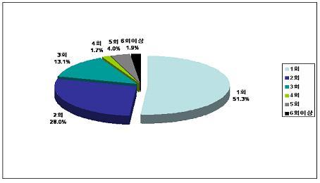 자녀에게 일어난 사고경험의 여부를 묻는 질문에서 전체 학부모의 36.0%가 자녀가 사고를 당한 경험이 있다고 응답하였다. 또한 자녀에게 일어난 사고 횟수에 있어서는 1회인 경우가 51.3%이며, 6회 이상도 1.9%나 있는 것으로 나타났다.