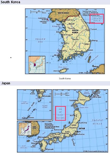 ‘일본해’를 단독표기해 오던 세계적 백과사전 브리태니커가 2007년 최신판에 동해와 일본해를 병기했다.