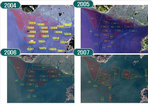 동 사업은 2004년부터 프랑스 및 대만의 인공위성을 이용하여 김 양식어장의 시설량을 판독한 이래 2007년까지 김은 4회, 어류가두리 양식어장은 2회가 실시되었고, 전복가두리 양식장은 2회째의 판독을 앞두고 있다.
