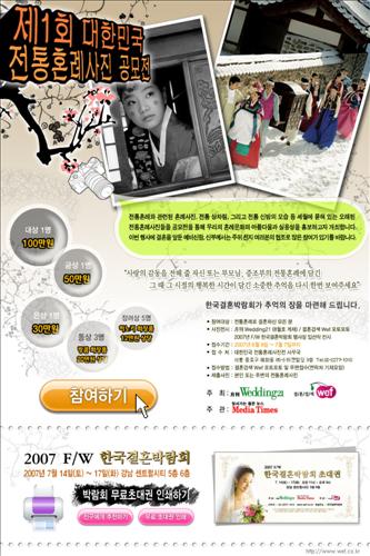 한편 행사를 주최하는 '대한민국 전통혼례사진전' 관계자는 "세월이 갈수록 가치를 더하는 전통혼례 사진들을 통해 우리 혼례 문화의 아름다움과 실용성을 홍보하기 위해 이번 행사를 마련했다" 고 행사 취지를 밝혔다.