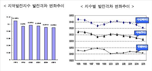 지역발전지수(RDI) 격차완화:('00) 0.102,('02) 0.097,('04) 0.091,('05) 0.090