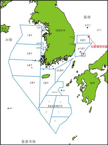 국내 최초로 동해 포항 동북방 약 135㎞ 지점에서 가스하이드레이트 실물채취에 성공