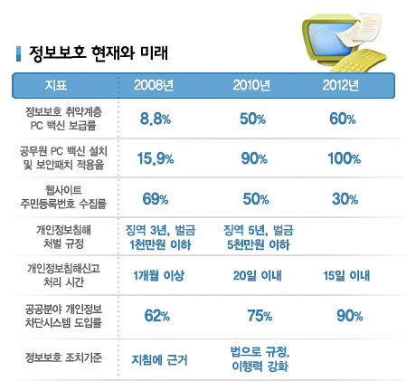 정부는 행정안전부, 방송통신위원회, 지식경제부, 국가정보원 합동으로 ‘정보보호 종합대책’을 마련, 개인정보보호 강화에 적극 나선다는 계획이다.