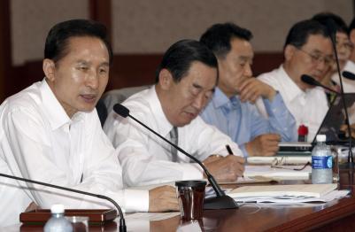 이 대통령은 이날 회의에 참석한 한나라당 임태희 정책위의장에게 “법개정 사안에 대해서는 관련 의원들과 미리 내용을 충분히 검토해서 국회가 정상화되면 곧바로 처리될 수 있도록 하라”고 당부했다.