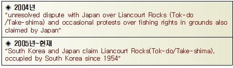 국정원은 미 중앙정보국(CIA)이 당초 월드 팩트북에 독도와 관련해 분쟁지역인 것처럼 ‘unresolved dispute with Japan’(일본과의 분쟁이 해결되지 않았다)이라고 표현한 바 있으나, 2005년 4월 이 표현을 삭제했다고 설명했다.