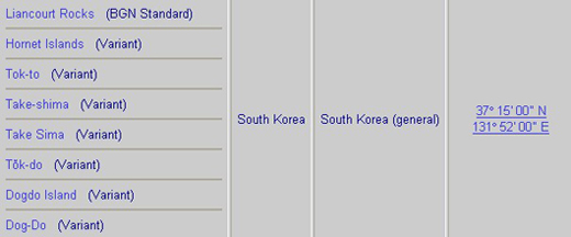 이에 따라 독도는 다시 한국 점유를 나타내는 ‘한국령’으로 표기된다. 다만 독도의 표준명칭은 1977년 7월 14일 채택된 ‘리앙쿠르암(Liancourt Rocks)’으로 사용되고 독도는 리앙쿠르암의 변형어로 다케시마와 함께 지오넷 사이트에 소개된다.