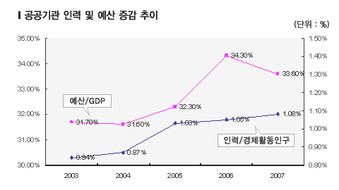 이처럼 세계 각국은 공공부문 민영화 등으로 성장을 새로운 발판을 만드는 것에 비해, 우리나라는 거꾸로 지난 5년간 공기업 수와 종사자가 크게 늘었다. 이는 한국 경제의 낮은 생산성과 불투명성, 효율 저하의 원인이 되고 있다.