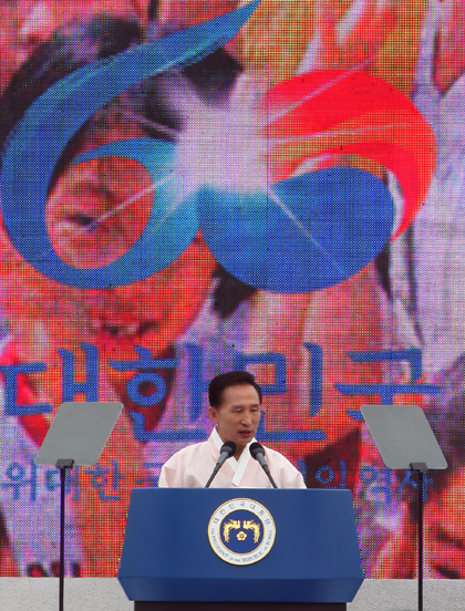 이 대통령은 이어 "건국 60년, 기적의 역사는 새로운 60년에도 이어질 것이며 대한민국의 신화는 아직 끝나지 않았다"는 말로 경축사를 마무리했다.
